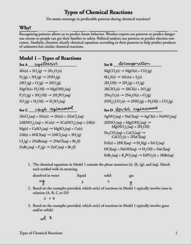 If yes, use an example from model 1 to describe the changes that take place. A chemical reaction is a process generally characterized by a chemical change in which the starting materials (reactants) are different from the products. More lessons for igcse chemistry math worksheets. Types of chemical reactions pogil. Below are a series of slides from a power point presentation on classifying types of chemical reactions.
